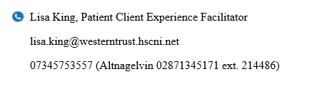 Posted by Lisa King, Patient Client Experience Facilitator, Professional Nursing, Midwifery & AHP, Western Health & Social Care Trust, on