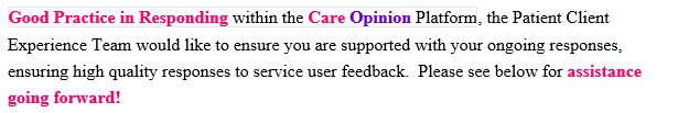 Please also feel free to complete the 'Introduction to Care Opinion Northern Ireland' course which is available on Learn HSCNI (linked below for your convenience);