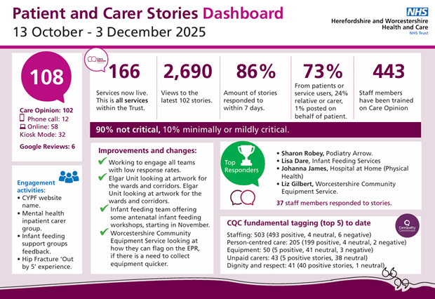 Why We Created the Care Opinion Newsletter – and How It Came to Life https://www.careopinion.org.uk/resources/blog-resources/0-images/fe7c8d88d223412a879e57a0a7407c55.jpg Care Opinion 0114 281 6256 https://www.careopinion.org.uk /content/uk/logos/co-header-logo-2020-default.pngUpdate from Herefordshire and Worcestershire Health and Care NHS Trust